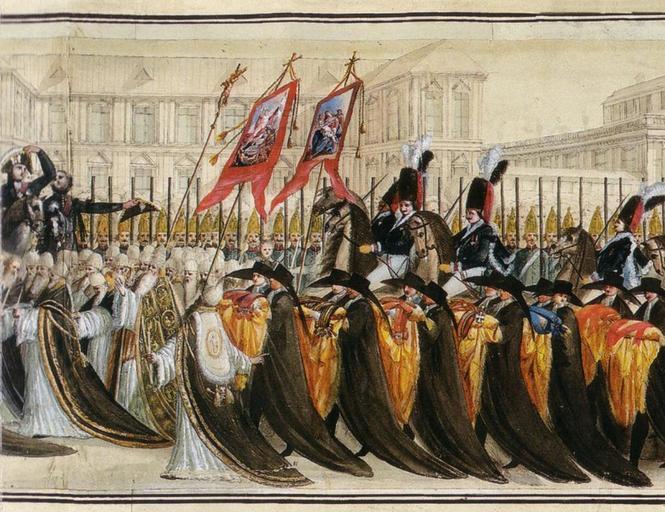 | Keywords: Peter III of Russia's burial det09.jpg Вто ичные похо оны Пет а III 2 декаб я 1796 г Составить п едставление о том как выглядела т ау ная п оцессия мы можем по ее изоб ажению сделанному неизвестным по всей ве оятности итальянским художником Изоб ажение это п едставляет собой улон длиной 15 8 м и ши иной 0 75 м За ними следует шествие духовенства с хо угвями и це ковный хо есколько гене алов несут на подушках о дена и две земельные ко оны Пет а III соп овождаемые ст оем лейб-гуса и Ки аси ского наследника полка http //babs71 livejournal com/196710 html ~ 1796 Italian anonimous Peter III's burials 1796 Files uploaded by Shakko from various sources PD-Art |