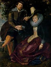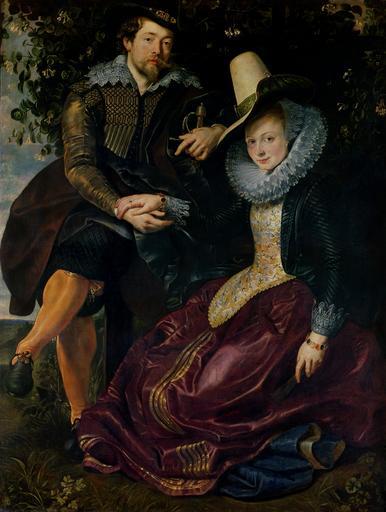Keywords: Peter Paul Rubens - Rubens en Isabella Brant in de Kamperfoelie Bower.jpg Artwork Creator Peter Paul Rubens Geißblatt Jelängerjelieber war als Treuesymbol bekannt die ineinandergelegten Hände dextrarum iunctio deuteten seit der Antike auf den Ehestand hin Jedoch sind diese Verweise völlig in die lebensnahe Momentaufnahme integriert Bürgerliche Zufriedenheit beachtlicher Wohlstand tiefe Zuneigung der Eheleute kommen in dem Bild zum Ausdruck Directly after his return from Italy the 32 year old Rubens married the 18 year old Isabella Brant This double portrait which broke new ground in portrait painting was purportedly done shortly thereafter Rubens did not however give up using traditional symbolism Honeysuckle was a well known symbol for faithfulness and hands laid over one another dextrarum iunctio have symbolized matrimony since ancient times However these references are integrated into this snapshot-like scene in which middle-class contentedness substantial affluence and strong affection are expressed <ref>http //wayback archive org/web/20110606170051/http //www pinakothek de/peter-paul-rubens/rubens-und-isabella-brant-der-geissblattlaube Bayerische Staatsgemäldesammlungen</ref> reflist ca 1609/1610 Oil canvas panel cm 178 136 5 Institution Alte Pinakothek VII http //wayback archive org/web/20110606170051/http //www pinakothek de/peter-paul-rubens/rubens-und-isabella-brant-der-geissblattlaube Bayerische Staatsgemäldesammlungen object history Aus der Düsseldorfer Galerie credit line accession number 334 84030 PD-old-100 Honeysuckle Bower by Peter Paul Rubens 01 |