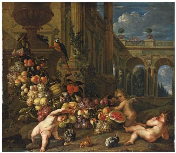 Keywords: Peter Ykens and Jan Pauwel Gillemans - An architectural capriccio with putti around a swag of fruit, with a parrot, squirrel and rabbits.jpg Artwork Creator Peter Ykens and Creator Jan Pauwel Gillemans II en An architectural capriccio with putti around a swag of fruit with a parrot squirrel and rabbits 1671 - 1695 http //www christies com/lotfinder/paintings/peter-ykens-and-jan-pauwel-gillemans-5221833-details aspxww lukasweb be/en/photo/bloemenkrans-als-omlijting-van-de-heilige-familie-0 Oil canvas size cm 61 69 8 object history credit line signed 'P YKENS' lower right Sold at Christie's 8 July 2009 London lot 173 accession number PD-old-100 PD-old-100 Peter Ykens Jan Pauwel Gillemans II 17th-century oil on canvas paintings |