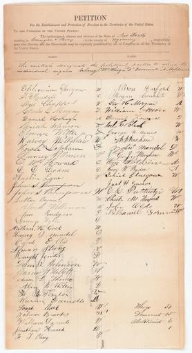 Keywords: u.s. national archives usnationalarchives center for legislative archives centerforlegislativearchives nara:arcid=4534642 new york slavery slave-trade slavetrade 1851 petiton text document writing drawing sketch Original Caption: Petition from Citizens of New York Asking that Slavery and the Slave-trade may be Expressly Prohibited by Act of Congress in all the Territories of the United States, 03/25/1851 Created By: U.S. House of Representatives. Committee on Territories. (12/13/1825 - 1946) From: Record Group/Collection: 233 From: Petitions and Memorials, compiled 1825 - 1946 Production Dates: 03/25/1851 Persistent URL: arcweb.archives.gov/arc/action/ExternalIdSearch?id=4534642 Reference Unit: Center for Legislative Archives (NWL), National Archives Building Access Restrictions: Unrestricted Use Restrictions: Unrestricted Original Caption: Petition from Citizens of New York Asking that Slavery and the Slave-trade may be Expressly Prohibited by Act of Congress in all the Territories of the United States, 03/25/1851 Created By: U.S. House of Representatives. Committee on Territories. (12/13/1825 - 1946) From: Record Group/Collection: 233 From: Petitions and Memorials, compiled 1825 - 1946 Production Dates: 03/25/1851 Persistent URL: arcweb.archives.gov/arc/action/ExternalIdSearch?id=4534642 Reference Unit: Center for Legislative Archives (NWL), National Archives Building Access Restrictions: Unrestricted Use Restrictions: Unrestricted |