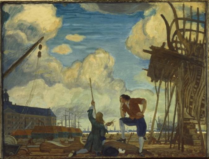 View Original:Petr the Great in Holland by M.Dobuzhinskiy (1910, GTG).jpg (662x502)