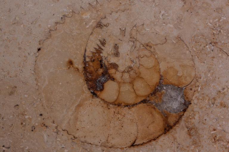 Keywords: petrification fossil nautilus fossil solnhofen limestone slabs limestone jura polished surface layered deposits sea upper jurassic quarry cream colors ochre yellow fund background