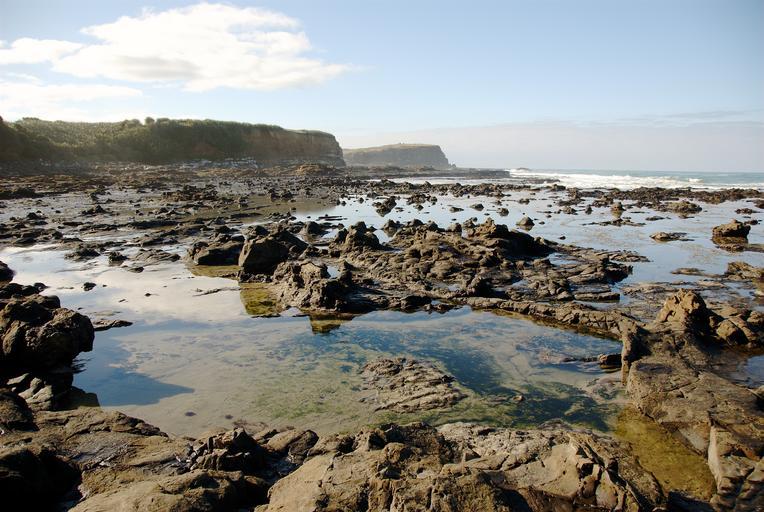 Keywords: Petrified forest at Curio Bay.jpg Petrified forest at Curio Bay Southland New Zealand Own Karora 46 39 43 63 S 169 5 53 16 E zoom 17_region NZ_heading ESE Petrified wood Curio Bay Coasts of New Zealand Rock formations in New Zealand