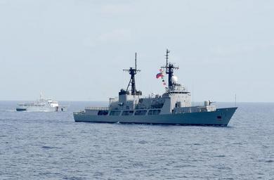 | Keywords: PF-15 and SARV-002 CARAT 2013.jpg en PHILIPPINE SEA June 29 2013 The Philippine Coast Guard vessel Edsa SARV 002 left and the Philippine Navy frigate Gregorio Del Pilar PF 15 steam in formation during Cooperation Afloat Readiness and Training CARAT Philippines 2013 More than 600 Sailors and Marines are participating in CARAT Philippines 2013 U S Navy units participating in CARAT Philippines include the Fitzgerald with embarked Destroyer Squadron DESRON 7 staff a U S Marine Corps landing force and the diving and salvage vessels USNS Safeguard T-ARS 50 and USNS Salvor T-ARS 52 with embarked Mobile Diving and Salvage Unit MDSU 1 CARAT is a series of bilateral military exercises between the U S Navy and the armed forces of Bangladesh Brunei Cambodia Indonesia Malaysia the Philippines Singapore Thailand and Timor Leste 130629-N-YU572-530 Navy http //www flickr com/photos/compacflt/9169961567/ U S Navy photo by Mass Communication Specialist 1st Class Jay C Pugh 2013-06-29 PD-USGov-Military-Navy BRP Gregorio del Pilar PF-15 |