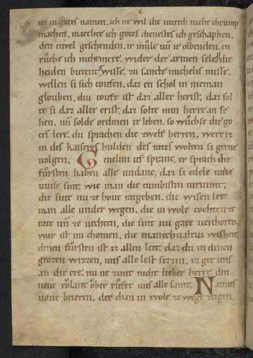 Keywords: Pfaffe Konrad - Rolandslied - cod. pal. germ. 112 - 030.jpg Pfaffe Konrad - Rolandslied - cod pal germ 112 - jpg 029 031 Rolandslied des Pfaffen Konrad à bersetzung bzw Bearbeitung der altfranzösischen Chanson de Roland um 1100 Blatt 14v Pfaffe Konrad Rolandslied Pergament 123 Blatt 21x15 cm Regensburg/Hessen-Thüringen Ende 12 Jahrhundert Cod pal germ 112 Universitätsbibliothek Heidelberg http //diglit ub uni-heidelberg de/diglit/cpg112 century 12 Pfaffe Konrad PD-old Rolandslied Cod Pal germ 112 |