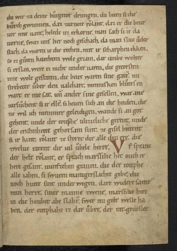 Keywords: Pfaffe Konrad - Rolandslied - cod. pal. germ. 112 - 031.jpg Pfaffe Konrad - Rolandslied - cod pal germ 112 - jpg 030 032 Rolandslied des Pfaffen Konrad à bersetzung bzw Bearbeitung der altfranzösischen Chanson de Roland um 1100 Blatt 15r Pfaffe Konrad Rolandslied Pergament 123 Blatt 21x15 cm Regensburg/Hessen-Thüringen Ende 12 Jahrhundert Cod pal germ 112 Universitätsbibliothek Heidelberg http //diglit ub uni-heidelberg de/diglit/cpg112 century 12 Pfaffe Konrad PD-old Rolandslied Cod Pal germ 112 |