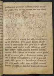 Keywords: Pfaffe Konrad - Rolandslied - cod. pal. germ. 112 - 053.jpg Pfaffe Konrad - Rolandslied - cod pal germ 112 - jpg 052 054 Beratung und Verschwörung Geneluns mit den Heiden unter einem Ölbaum Rolandslied des Pfaffen Konrad à bersetzung bzw Bearbeitung der altfranzösischen Chanson de Roland um 1100 Blatt 26r Pfaffe Konrad Rolandslied Pergament 123 Blatt 21x15 cm Regensburg/Hessen-Thüringen Ende 12 Jahrhundert Cod pal germ 112 Universitätsbibliothek Heidelberg http //diglit ub uni-heidelberg de/diglit/cpg112 century 12 Pfaffe Konrad PD-old Rolandslied Cod Pal germ 112 |