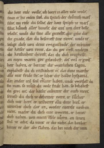 Keywords: Pfaffe Konrad - Rolandslied - cod. pal. germ. 112 - 055.jpg Pfaffe Konrad - Rolandslied - cod pal germ 112 - jpg 054 056 Rolandslied des Pfaffen Konrad à bersetzung bzw Bearbeitung der altfranzösischen Chanson de Roland um 1100 Blatt 27r Pfaffe Konrad Rolandslied Pergament 123 Blatt 21x15 cm Regensburg/Hessen-Thüringen Ende 12 Jahrhundert Cod pal germ 112 Universitätsbibliothek Heidelberg http //diglit ub uni-heidelberg de/diglit/cpg112 century 12 Pfaffe Konrad PD-old Rolandslied Cod Pal germ 112 |