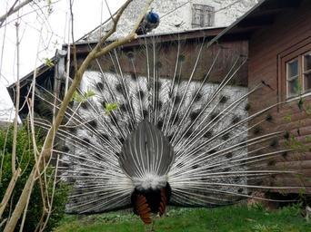Keywords: PfauVonHinten.jpg en Peacock seen from behind Own Ramessos 2009-04 Pavo cristatus captive male display back