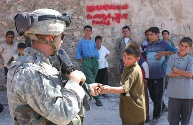 Keywords: Pfc. John Reed gives a small metal pipe back to a young boy DVIDS10609.jpg en 051003-A-7186W-006 - Pfc John Reed an infantryman with Company D 2nd Battalion 325th Airborne Infantry Regiment 82nd Airborne Division gives a small metal pipe back to a young boy in Tall Afar Iraq after inspecting it Oct 3 2005 Reed is from Lake Mary Fla U S Army photo by Pfc James Wilt 2005-10-03 Staff Sgt James Wilt https //www dvidshub net/image/10609 10609 2005-10-04 16 14 TAL AFAR IQ PD-USGov 82nd Airborne Division Images from DoD uploaded by Fæ Tal Afar |