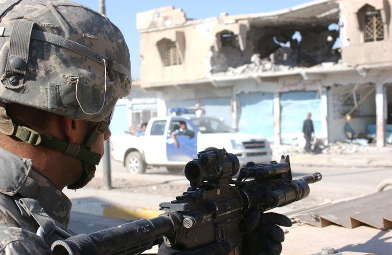 Keywords: Pfc. Kevin L. White Watches as Vehicles Carrying Iraqi Police Forces Pass DVIDS10605.jpg en 051003-A-7186W-001 - Pfc Kevin L White an infantryman with Company D 2nd Battalion 325th Airborne Infantry Regiment 82nd Airborne Division watches as vehicles carrying Iraqi police forces pass his unit's position on a street in Tall Afar Iraq Oct 3 2005 U S Army photo by Pfc James Wilt 2005-10-03 Staff Sgt James Wilt https //www dvidshub net/image/10605 10605 2005-10-04 16 14 TAL AFAR IQ PD-USGov 82nd Airborne Division Images from DoD uploaded by Fæ Tal Afar in the Iraq War |