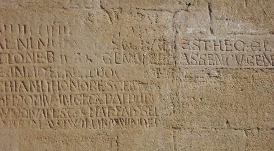 Keywords: Pfofeld 2012-03-27 (4).JPG de Evang -Luth Pfarrkirche St Michael in Pfofeld im Landkreis Weißenburg- lateinische Weiheinschrift neben dem Eingang auf der Südseite own Rensi 2012-03-27 Saint Michael Church Pfofeld Cc-zero