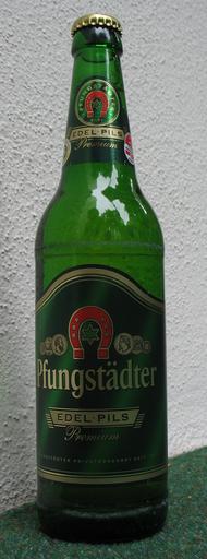 Keywords: Pfungstädter Pils.jpg en A bottle of Pfungstädter Pils 2011-06-01 own Miguel Andrade cc-zero Uploaded with UploadWizard Beer bottles green glass Beers of Hesse