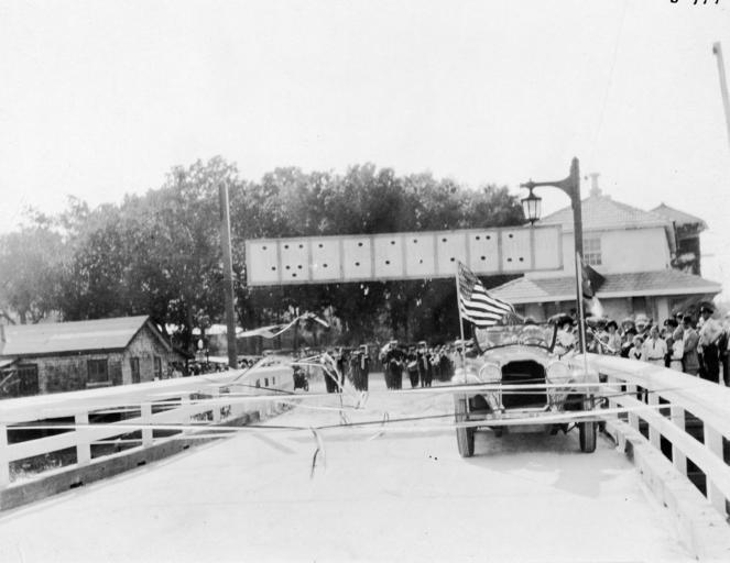 | Keywords: wilmington (n.c.) wilmingtonnc wrightsville beach (n.c.) wrightsvillebeachnc parades street scene streetscene blackandwhite monochrome snow black and white Dedication ceremony for the Wilmington-Wrightsville Beach Causeway June 1926. Ribbons are seen tied across the bridge with a decorated car just behind the ribbons. A marching band and a crowd are seen in the background. Wilmington, New Hanover County, NC c. 1926 From Carolina Power and Light (CP&L) Photograph Collection (PhC.68), North Carolina State Archives. Dedication ceremony for the Wilmington-Wrightsville Beach Causeway June 1926. Ribbons are seen tied across the bridge with a decorated car just behind the ribbons. A marching band and a crowd are seen in the background. Wilmington, New Hanover County, NC c. 1926 From Carolina Power and Light (CP&L) Photograph Collection (PhC.68), North Carolina State Archives. |