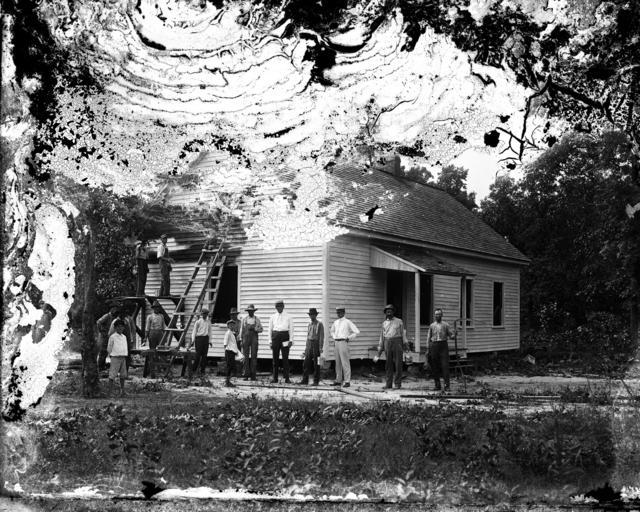 Keywords: blackandwhite monochrome building architecture outdoor black and white Junior Order of Mechanics members are seen posing for picture while they paint an unidentified Wake County school-house during their effort to re-paint every school in the county. Summer 1916 (8"x10" glass plate negative). From the J. C. Knowles Photograph Collection, State Archives of North Carolina, Raleigh, NC. Junior Order of Mechanics members are seen posing for picture while they paint an unidentified Wake County school-house during their effort to re-paint every school in the county. Summer 1916 (8"x10" glass plate negative). From the J. C. Knowles Photograph Collection, State Archives of North Carolina, Raleigh, NC. |
