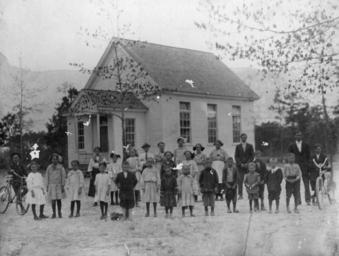 | Keywords: blackandwhite monochrome outdoor black and white Bizzell Grove School, Wayne County, NC; ca 1900-1905.  Students and teachers are posed in a group in front of a rural frame one-room school house. A handwritten ID label is affixed to the mounting card. Bizzell Millpond is located in east Wayne County on Walnut Creek.  From the Wayne County Schools Photo Collection, PhC.209, State Archives of North Carolina, Raleigh, NC. Bizzell Grove School, Wayne County, NC; ca 1900-1905.  Students and teachers are posed in a group in front of a rural frame one-room school house. A handwritten ID label is affixed to the mounting card. Bizzell Millpond is located in east Wayne County on Walnut Creek.  From the Wayne County Schools Photo Collection, PhC.209, State Archives of North Carolina, Raleigh, NC.  |