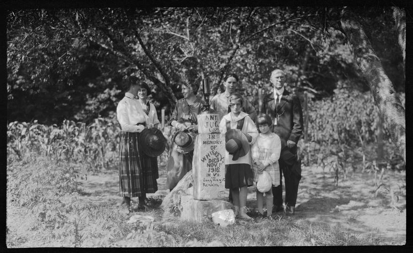 | Keywords: blackandwhite monochrome outdoor black and white Monument erected in the Dismal Swamp, near George Dyer's house, when Prohibition went into effect, n.d. L to R: Mrs. Surry Parker, Elizabeth Walton Parker, Mrs. Thomas Lingle, Eustace Lingle, Peggie Parker, Jane Parker, and Dr. Thomas Lingle. From the Surry Parker Photograph Collection, PhC.51, State Archives of North Carolina, Raleigh, NC. Monument erected in the Dismal Swamp, near George Dyer's house, when Prohibition went into effect, n.d. L to R: Mrs. Surry Parker, Elizabeth Walton Parker, Mrs. Thomas Lingle, Eustace Lingle, Peggie Parker, Jane Parker, and Dr. Thomas Lingle. From the Surry Parker Photograph Collection, PhC.51, State Archives of North Carolina, Raleigh, NC. |