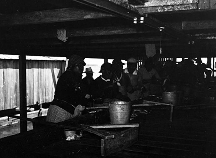 | Keywords: fishing commercial fishing commercialfishing north carolina northcarolina coast outer banks outerbanks blackandwhite monochrome black and white Herring fishermen on Chowan River women working on assembly line n.d. (1935-1940). From the Charles A. Farrell Photograph Collection, PhC.9, North Carolina State Archives, Raleigh, NC. Herring fishermen on Chowan River women working on assembly line n.d. (1935-1940). From the Charles A. Farrell Photograph Collection, PhC.9, North Carolina State Archives, Raleigh, NC. |