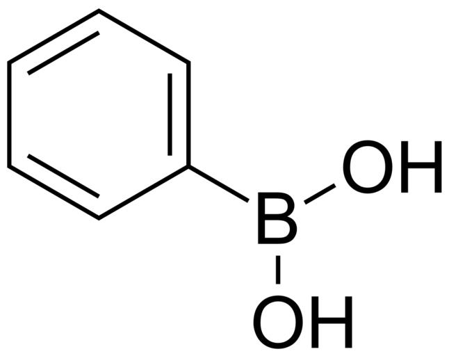 Keywords: Phenylboronic acid 200.svg validSVG Structure of phenylboronic acid Struktur von Phenylboronsäure Own 2014-04-15 Emeldir <span class signature-talk >talk</span> Chemical structure verified https //upload wikimedia org/wikipedia/commons/d/d3/Phenylboronic_acid_200 svg 1S/C6H7BO2/c8-7 9 6-4-2-1-3-5-6/h1-5 8-9H HXITXNWTGFUOAU-UHFFFAOYSA-N 98-80-6 202-701-9 PD-chem Phenylboronic acid |