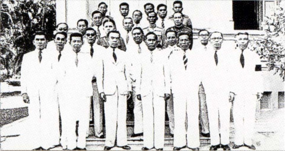 Keywords: Phibul Cabinet.jpg en Photograph of the Cabinet of Prime Minister Luang Phibunsonggram http //www oknation net/blog/print php id 505442 Author December 16 1938 “ August 1 1944 PD-Thailand Government of Thailand Plaek Pibulsonggram Pridi Banomyong Thawal Thamrongnavaswadhi Wan Waithayakon Khuang Abhaiwongse Politicians of Thailand Thailand in World War II ImageNote 1 428 92 51 73 846 450 2 Plaek Pibulsonggram ImageNoteEnd 1 ImageNote 2 385 79 45 55 846 450 2 Wan Waithayakon ImageNoteEnd 2 ImageNote 3 198 96 53 63 846 450 2 Pridi Banomyong ImageNoteEnd 3 ImageNote 4 154 89 45 63 846 450 2 Khuang Abhaiwongse ImageNoteEnd 4 ImageNote 5 92 83 56 74 846 450 2 Thawal Thamrongnavaswadhi ImageNoteEnd 5 ImageNote 6 522 98 52 63 846 450 2 Adul Aduladejchrat ImageNoteEnd 6 ImageNote 7 428 33 47 46 846 450 2 Phraya Songsuradet ImageNoteEnd 7 |