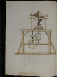 | Keywords: Philipp Mönch - Kriegsbuch - cod. pal. germ. 126 - 030.jpg Philipp Mönch - Kriegsbuch - cod pal germ 126 - jpg 029 031 de ;Kriegsbuch Dys büch der stryt vnd bůchßen Ward gemacht in der Vaßnacht als man zalt von cristus geburt 1496 11 -16 Februar 1496 jar dar uff soellen die buchßenmeister haben groß acht fer war Mühle Trichter mit zahnradgetriebenem Mühlstein Philipp Mönch Kriegsbuch Papier 44 Bl 41x28 5 cm Heidelberg 1496 Cod Pal germ 126 Universtiätsbibliothek Heidelberg http //digi ub uni-heidelberg de/diglit/cpg126 1496 Philipp Mönch PD-old-100 Kriegsbuch Cod Pal germ 126 |