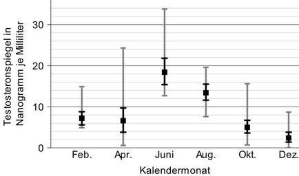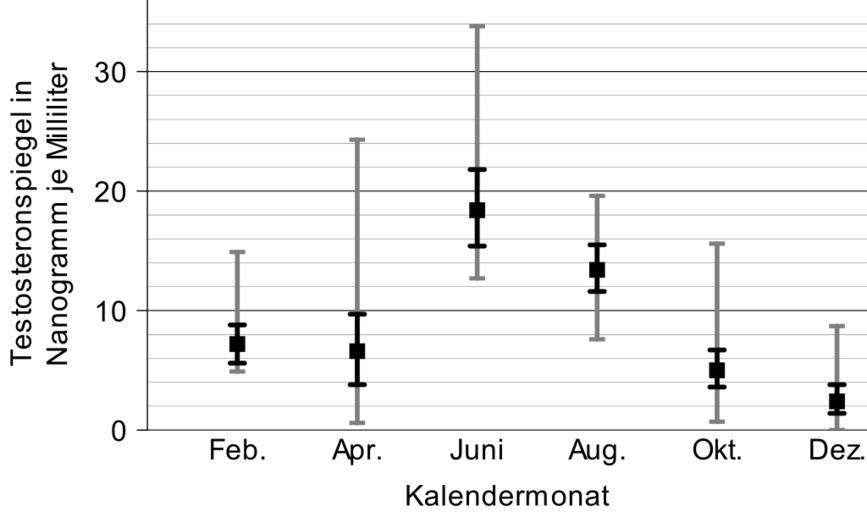 Keywords: Phodopus roborovskii DE Testosteronspiegel.svg Jahreszeitliche Entwicklung des Testosteronspiegels im Blutplasma männlicher Roborowski-Zwerghamster male testosterone plasma level selbst erstellt mit Gnumeric 1 7 own work / nach Natalja Jurjewna Feoktistowa Ilja Grigorjewitsch Meschtscherski Seasonal Changes in Desert Hamster Phodopus roborovskii Breeding Activity In Acta Zoologica Sinica Bd 51 Nr 1 2005 ISSN 0001-7051 S 1 “6 http //www actazool org/paperdetail asp id 1451 volume 51 number 1 bgpage 1 endpage 6 year 2005 month 2 Abstract und Volltext ; Abb 4 S 4 2008-02-01 Torben Schink wikitable style text-align center; - Nanogramm je Millimeter Feb Apr Juni Aug Okt Dez - text-align left; Mittelwert 7 2 6 6 18 4 13 4 5 0 2 4 - text-align left; Standardfehler 5 6 “8 8 3 8 “9 7 15 4 “21 8 11 6 “15 5 3 6 “6 7 1 4 “3 8 - text-align left; Wertebereich 4 9 “14 9 0 6 “24 3 12 7 “33 8 7 6 “19 6 0 7 “15 6 k  A “8 7 Phodopus roborovskii