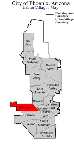 | Keywords: Phoenix Urban Villages Maryvale highlighted.svg This map shows the Urban Villages in Phoenix Arizona Maryvale is highlighted in red I created it in Inkscape using data from the City of Phoenix Website specifically the http //phoenix gov/PLANNING/vplanners pdf Urban Village Planners Map My own work based on government information Though I strove to be as accurate in the detail as possible the information isn't one hundred percent accurate 2008-04-15 Ixnayonthetimmay Public Domain See Category Maps of the Urban Villages of Phoenix Arizona for other versions of this image Maps of Phoenix Arizona Maps of the Urban Villages of Phoenix Arizona Created with Inkscape |