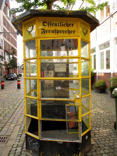 Keywords: phone booth historically payphone bremen antiquated germany yellow