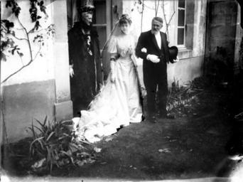 Keywords: bibliothèque de toulouse bibliothèquedetoulouse blackandwhite monochrome black and white Fonds Trutat - Photographie ancienne Cote : TRU C 2497 Localisation : Fonds ancien (S 30) Original non communicable Titre : Photo de la mariée aves ses parents, mariage Regnault, Foix Auteur : Trutat, Eugène Rôle de l’auteur : Photographe Lieu de création : Foix (Ariège) Date de création : 1859-1910 [entre] Mesures : : 9 x 12 cm Observations : Note manuscrite de Trutat : " Foix : mariage Regnault ". Une photocopie du tirage papier de Dieuzaide. Mot(s)-clé(s) : -- Portrait -- En pied -- Famille -- Femme -- Robe -- Mariage -- Voile -- Homme -- Costume masculin -- Costume féminin -- Haut-de-forme -- Chapeau -- Voilette -- Gant -- Seuil -- Maison -- Relation bienveillante -- Regnault, Félix -- Regnault, Madame -- Foix (Ariège) -- Foix (Ariège; canton) -- Midi-Pyrénées (France) -- Ariège (Midi-Pyrénées) -- 19e siècle, 2e moitié -- 20e siècle, 1e quart Médium : Photographies -- Négatifs sur plaque de verre -- Noir et blanc -- Portraits de groupe numerique.bibliotheque.toulouse.fr/cgi-bin/library?c=phot... Bibliothèque de Toulouse. Domaine public Fonds Trutat - Photographie ancienne Cote : TRU C 2497 Localisation : Fonds ancien (S 30) Original non communicable Titre : Photo de la mariée aves ses parents, mariage Regnault, Foix Auteur : Trutat, Eugène Rôle de l’auteur : Photographe Lieu de création : Foix (Ariège) Date de création : 1859-1910 [entre] Mesures : : 9 x 12 cm Observations : Note manuscrite de Trutat : " Foix : mariage Regnault ". Une photocopie du tirage papier de Dieuzaide. Mot(s)-clé(s) : -- Portrait -- En pied -- Famille -- Femme -- Robe -- Mariage -- Voile -- Homme -- Costume masculin -- Costume féminin -- Haut-de-forme -- Chapeau -- Voilette -- Gant -- Seuil -- Maison -- Relation bienveillante -- Regnault, Félix -- Regnault, Madame -- Foix (Ariège) -- Foix (Ariège; canton) -- Midi-Pyrénées (France) -- Ariège (Midi-Pyrénées) -- 19e siècle, 2e moitié -- 20e siècle, 1e quart Médium : Photographies -- Négatifs sur plaque de verre -- Noir et blanc -- Portraits de groupe numerique.bibliotheque.toulouse.fr/cgi-bin/library?c=phot... Bibliothèque de Toulouse. Domaine public |