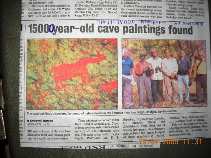 Keywords: Photo of News in Daily Hitavada.JPG en New Discovery of Upper Paleolithic Shelter Cave Painting in Tapti Vally in Central India by Dr V T Ingole Team Dr Vijay Ingole Padmakar Lad Manohar Khode Dnyaneswar Damahe Shirishkumar Patil Pradeep Hirurkar own Shirishkumar Patil Archaeological Survey of India |