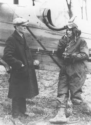 | Keywords: smithsonian institution smithsonianinstitution men two standing goggles cap aviation aviator plane knight pilot airmail boots 1922 aircraft airplane biplane us mail usmail us air mail usairmail de havilland dehavilland de havilland d.h.4 dehavillanddh4 d.h.4 dh4 photo emulsion photoemulsion national postal museum nationalpostalmuseum cockpit solo two men twomen flight radio open cock pit opencockpit jack knight jackknight james herbert knight jamesherbertknight james herbert 'jack' knight jamesherbertjackknight james h. 'jack' knight jameshjackknight james h. knight jameshknight j.h. knight jhknight james knight jamesknight blackandwhite monochrome black and white Date: 1922 Object number: A.2009-11 Medium: paper; photo-emulsion Description: Unidentified individual and airmail pilot Jack Knight standing next to Knight's de Havilland airplane. In 1922 Knight was one of a group of airmail pilots who helped test the use of radios in aircraft for the Post Office Department. At the time, airplane cockpits were sparse, and did not include radios. The debate over the use of radio in mail aircraft included a discussion over its purpose. Were airborne radios to be used by pilots merely to inform their superiors of their location? Or to help transmit weather information to the pilots, helping them avoid potentially deadly storms? Postal officials determined that radios were important as a communication method between field operations, but not necessary inside the aircraft. In 1920 the Department ordered radio stations installed at each of the planned transcontinental airmail fields. Field and division managers used radio to track aircraft and share weather information. In the 1922 tests, Knight flew with a radio set in his airplane. The receiver was located under his helmet and the transmitter on his chest. The whole mechanism, including batteries, weighed 170 pounds. After the 1922 tests, the topic was set aside for lack of funding until 1925. National Postal Museum, Curatorial Photographic Collection Photographer: Unknown Place: United States of America See more items in: National Postal Museum Collection Credit line: National Postal Museum, Curatorial Photographic Collection Photographer: Unknown Persistent URL:http://www.arago.si.edu/index.asp?con=2&cmd=1&id=207509 Repository:National Postal Museum View more collections from the Smithsonian Institution. Date: 1922 Object number: A.2009-11 Medium: paper; photo-emulsion Description: Unidentified individual and airmail pilot Jack Knight standing next to Knight's de Havilland airplane. In 1922 Knight was one of a group of airmail pilots who helped test the use of radios in aircraft for the Post Office Department. At the time, airplane cockpits were sparse, and did not include radios. The debate over the use of radio in mail aircraft included a discussion over its purpose. Were airborne radios to be used by pilots merely to inform their superiors of their location? Or to help transmit weather information to the pilots, helping them avoid potentially deadly storms? Postal officials determined that radios were important as a communication method between field operations, but not necessary inside the aircraft. In 1920 the Department ordered radio stations installed at each of the planned transcontinental airmail fields. Field and division managers used radio to track aircraft and share weather information. In the 1922 tests, Knight flew with a radio set in his airplane. The receiver was located under his helmet and the transmitter on his chest. The whole mechanism, including batteries, weighed 170 pounds. After the 1922 tests, the topic was set aside for lack of funding until 1925. National Postal Museum, Curatorial Photographic Collection Photographer: Unknown Place: United States of America See more items in: National Postal Museum Collection Credit line: National Postal Museum, Curatorial Photographic Collection Photographer: Unknown Persistent URL:http://www.arago.si.edu/index.asp?con=2&cmd=1&id=207509 Repository:National Postal Museum View more collections from the Smithsonian Institution. |