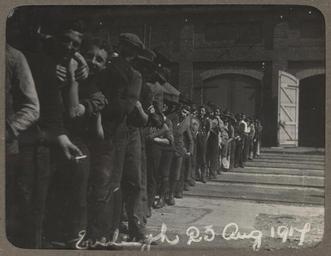 Keywords: archives state records nsw staterecordsnsw newsouthwales blackandwhite rail strike eveleigh queue monochrome black and white Title: Photograph album of Eveleigh Workshops during the 1917 railway strike - Waiting for dinner Dated: 23/08/1917 Digital ID: 15309_a015_000026 Series: NRS 15309 Photograph album of Eveleigh Workshops during the 1917 railway strike Rights: No known copyright restrictions www.records.nsw.gov.au/about-us/rights-and-permissions We'd love to hear from you if you use our photos/documents. Many other photos in our collection are available to view and browse on our website using Photo Investigator. Title: Photograph album of Eveleigh Workshops during the 1917 railway strike - Waiting for dinner Dated: 23/08/1917 Digital ID: 15309_a015_000026 Series: NRS 15309 Photograph album of Eveleigh Workshops during the 1917 railway strike Rights: No known copyright restrictions www.records.nsw.gov.au/about-us/rights-and-permissions We'd love to hear from you if you use our photos/documents. Many other photos in our collection are available to view and browse on our website using Photo Investigator. |