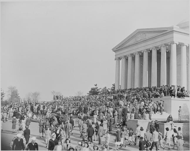 | Keywords: Photograph of crowds at the Jefferson Memorial for a ceremony marking Jefferson's birthday. - NARA - 199594.tif Scope and content General notes 199594 Local identifier National Archives and Records Administration Office of Presidential Libraries Harry S Truman Library 04/01/1985 - NARA-Author Rowe Abbie 1905-1967 Photographer 8451352 <br /> Harry S Truman Library NLHST 500 West U S Highway 24 Independence MO 64050-1798 1947-04-13 Record group Collection HST-AVC Audiovisual Collection 1957 - 2006 Record group ARC 1207 Photographs Relating to the Administration Family and Personal Life of Harry S Truman compiled 1957 - 2004 documenting the period 1849 - 2004 Series ARC 198606 File unit File unit ARC Variant control numbers NAIL Control Number NLT-AVC-PHT-73 2439 yes Other versions <gallery> File Photograph_of_crowds_at_the_Jefferson_Memorial_for_a_ceremony_marking_Jefferson's_birthday _-_NARA_-_199594 tif tif File Photograph_of_crowds_at_the_Jefferson_Memorial_for_a_ceremony_marking_Jefferson's_birthday _-_NARA_-_199594 jpg jpg </gallery> NARA-cooperation PD-USGov Photographs by Abbie Rowe Black and white photographs NARA TIF images with categorized JPGs |