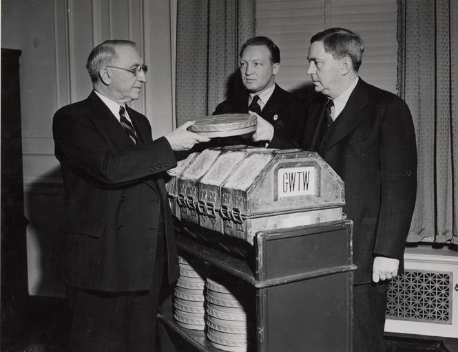 | Keywords: united states national archives personnel unitedstatesnationalarchivespersonnel gone with the wind gonewiththewind r.d.w. connor rdwconnor nara:arcid=3493235 u.s. national archives usnationalarchives b/w bw indoor blackandwhite black and white Original Caption: R.D.W. Connor (1st Archivist of the U.S.) receiving film "Gone With The Wind" from Senator George of Georgia and Carter Barron, Loew's Eastern Division manager, January 30, 1941. U.S. National Archives’ Local Identifier: 64-NA-265 Persistent URL: catalog.archives.gov/id/3493235 Repository: Still Picture Records Section, Special Media Archives Services Division (NWCS-S), National Archives at College Park, 8601 Adelphi Road, College Park, MD, 20740-6001. For information about ordering reproductions of photographs held by the Still Picture Unit, visit: www.archives.gov/research/order/still-pictures.html Reproductions may be ordered via an independent vendor. NARA maintains a list of vendors at www.archives.gov/research/order/vendors-photos-maps-dc.html Access Restrictions: Unrestricted Use Restrictions: Unrestricted Original Caption: R.D.W. Connor (1st Archivist of the U.S.) receiving film "Gone With The Wind" from Senator George of Georgia and Carter Barron, Loew's Eastern Division manager, January 30, 1941. U.S. National Archives’ Local Identifier: 64-NA-265 Persistent URL: catalog.archives.gov/id/3493235 Repository: Still Picture Records Section, Special Media Archives Services Division (NWCS-S), National Archives at College Park, 8601 Adelphi Road, College Park, MD, 20740-6001. For information about ordering reproductions of photographs held by the Still Picture Unit, visit: www.archives.gov/research/order/still-pictures.html Reproductions may be ordered via an independent vendor. NARA maintains a list of vendors at www.archives.gov/research/order/vendors-photos-maps-dc.html Access Restrictions: Unrestricted Use Restrictions: Unrestricted |