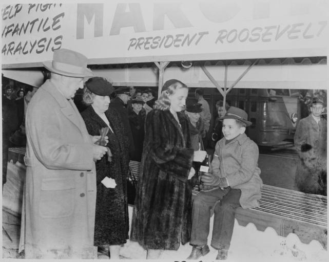 | Keywords: nara:arcid=199306 national archives nationalarchives woman fur outdoors charity march of dimes marchofdimes 1946 1940s forties polio margaret truman margarettruman bess truman besstruman blackandwhite monochrome black and white Original Caption: Photograph of Margaret Truman dropping a coin in a bottle held by a young boy as part of a public appearance in behalf of the March of Dimes, while Bess Truman and an unidentified man look on., 01/14/1946 From:: Series: Photographs Relating to the Administration, Family, and Personal Life of Harry S. Truman , compiled 1957 - 2004, documenting the period 1849 - 2004 Created By:: Harry S. Truman Library. (04/01/1985 - ) Production Date: 01/14/1946 Persistent URL: arcweb.archives.gov/arc/action/ExternalIdSearch?id=199306 Repository: Harry S. Truman Library,Independence, MO For information about ordering reproductions of photographs held by the Still Picture Unit, visit: www.archives.gov/research/order/still-pictures.html Reproductions may be ordered via an independent vendor. NARA maintains a list of vendors at www.archives.gov/research/order/vendors-photos-maps-dc.html Access Restrictions: Unrestricted Use Restrictions: Unrestricted Original Caption: Photograph of Margaret Truman dropping a coin in a bottle held by a young boy as part of a public appearance in behalf of the March of Dimes, while Bess Truman and an unidentified man look on., 01/14/1946 From:: Series: Photographs Relating to the Administration, Family, and Personal Life of Harry S. Truman , compiled 1957 - 2004, documenting the period 1849 - 2004 Created By:: Harry S. Truman Library. (04/01/1985 - ) Production Date: 01/14/1946 Persistent URL: arcweb.archives.gov/arc/action/ExternalIdSearch?id=199306 Repository: Harry S. Truman Library,Independence, MO For information about ordering reproductions of photographs held by the Still Picture Unit, visit: www.archives.gov/research/order/still-pictures.html Reproductions may be ordered via an independent vendor. NARA maintains a list of vendors at www.archives.gov/research/order/vendors-photos-maps-dc.html Access Restrictions: Unrestricted Use Restrictions: Unrestricted |