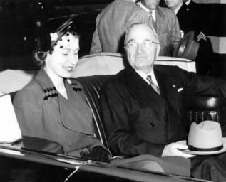 Keywords: nara:arcid=6233770 u.s. national archives usnationalarchives harry s. truman library harrystrumanlibrary harry s. truman harrystruman princess elizabeth of england princesselizabethofengland limousine 1951 1950's 1950s blair house blairhouse blackandwhite people monochrome black and white Original Caption: Photograph of President Harry S. Truman and England's Princess Elizabeth in Limousine, 10/31/1951 Created By: National Archives and Records Administration. Office of Presidential Libraries. Harry S. Truman Library. (04/01/1985 - ) From: Series: Photographs Relating to the Administration, Family, and Personal Life of Harry S. Truman, compiled 1957 - 2004, documenting the period 1849 - 2004 Contact: Harry S. Truman Library (NLHST), 500 West U.S. Highway 24, Independence, MO, 64050-1798. PHONE: 816-268-8272; FAX: 816-268-8295; EMAIL:truman.reference@nara.gov. Production Dates: 10/31/1951 Scope and Content Note: After arriving at Washington National Airport's Military Air Transport Service Terminal, England's Princess Elizabeth (left) joins President Harry S. Truman in the Chief Executive's limousine for her ride to Blair House. Persistent URL: arcweb.archives.gov/arc/action/ExternalIdSearch?id=6233770 Truman Library URL: www.trumanlibrary.org/photographs/view.php?id=12315&rr= Access Restrictions: Unrestricted Use Restrictions: Unrestricted Original Caption: Photograph of President Harry S. Truman and England's Princess Elizabeth in Limousine, 10/31/1951 Created By: National Archives and Records Administration. Office of Presidential Libraries. Harry S. Truman Library. (04/01/1985 - ) From: Series: Photographs Relating to the Administration, Family, and Personal Life of Harry S. Truman, compiled 1957 - 2004, documenting the period 1849 - 2004 Contact: Harry S. Truman Library (NLHST), 500 West U.S. Highway 24, Independence, MO, 64050-1798. PHONE: 816-268-8272; FAX: 816-268-8295; EMAIL:truman.reference@nara.gov. Production Dates: 10/31/1951 Scope and Content Note: After arriving at Washington National Airport's Military Air Transport Service Terminal, England's Princess Elizabeth (left) joins President Harry S. Truman in the Chief Executive's limousine for her ride to Blair House. Persistent URL: arcweb.archives.gov/arc/action/ExternalIdSearch?id=6233770 Truman Library URL: www.trumanlibrary.org/photographs/view.php?id=12315&rr= Access Restrictions: Unrestricted Use Restrictions: Unrestricted |