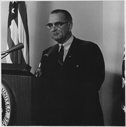 | Keywords: Photograph of President Lyndon B. Johnson's Midnight Address on Second Gulf of Tonkin Incident - NARA - 192482.tif Scope and content The photograph shows President Lyndon B Johnson speaking from behind a podium in the Fish Room of the White House reporting to the American people following renewed aggression in the Gulf of Tonkin General notes 192482 Local identifier 311-1-WH64 President 1963-1969 Johnson White House Photograph Office 1963 - 1969 Creator Cecil W Stoughton Tonkin Gulf of Asia gulf 4208823 20 108 <br /> Lyndon Baines Johnson Library NLLBJ 2313 Red River Street Austin TX 78705-5702 1964-08-04 Record group Collection LBJ-WHPO White House Photo Office Collection 11/22/1963 - 01/20/1969 Record group ARC 1153 Johnson White House Photographs compiled 11/22/1963 - 01/20/1969 Series ARC 192480 File unit File unit ARC Variant control numbers NAIL Control Number NLJ-WHPO-A-VN002<br /> Other Identifier 09988<br /> This is the NARA Internal Exhibit Tracking Number for the Public Vaults exhibit <br /> Search Identifier siLearning Center<br /> Search Identifier siNational History Standard Era 9 yes Other versions NARA-cooperation PD-USGov Lyndon B Johnson in 1964 0804 Tonkin Gulf Resolution White House in 1964 Photographs by Cecil W Stoughton |