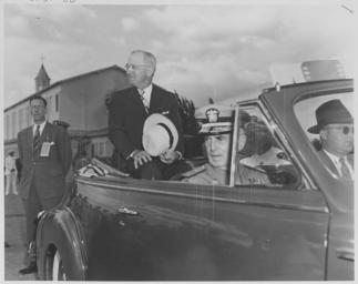 | Keywords: Photograph of President Truman in his automobile during an inspection tour of the U.S. Naval Base at Guantanamo Bay... - NARA - 200480.tif Scope and content General notes 200480 Local identifier National Archives and Records Administration Office of Presidential Libraries Harry S Truman Library 04/01/1985 - Harry S Truman Library NLHST 500 West U S Highway 24 Independence MO 64050-1798 1948-02-25 Record group Collection HST-AVC Audiovisual Collection 1957 - 2006 Record group ARC 1207 Photographs Relating to the Administration Family and Personal Life of Harry S Truman compiled 1957 - 2004 documenting the period 1849 - 2004 Series ARC 198606 File unit File unit ARC Variant control numbers NAIL Control Number NLT-AVC-PHT- 77 1945 yes Other versions <gallery> File Photograph_of_President_Truman_in_his_automobile_during_an_inspection_tour_of_the_U S _Naval_Base_at_Guantanamo_Bay _-_NARA_-_200480 tif tif File Photograph_of_President_Truman_in_his_automobile_during_an_inspection_tour_of_the_U S _Naval_Base_at_Guantanamo_Bay _-_NARA_-_200480 jpg jpg </gallery> NARA-cooperation PD-USGov VIPs at the Guantanamo Bay Naval Base Harry S Truman NARA TIF images with categorized JPGs |
