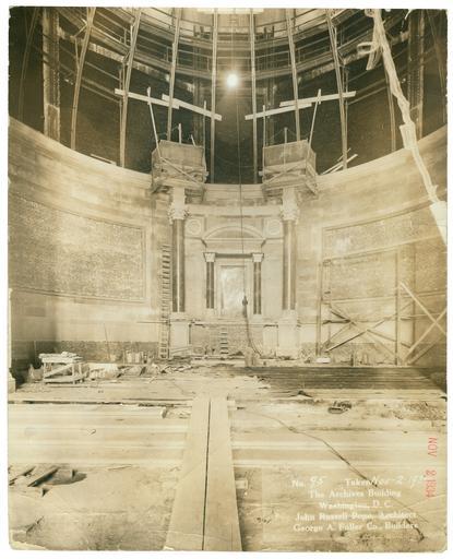 Keywords: u.s. national archives usnationalarchives nara:arcid=7368455 building construction nara rotunda 1934 11/03/1934 11031934 archives john russell pope johnrussellpope george a. fuller co. georgeafullerco washington d.c. washingtondc national archives building nationalarchivesbuilding Original Caption: Photograph of the Rotunda of the National Archives Building Being Constructed, 11/03/1934 U.S. National Archives’ Local Identifier: 121-BCP-111C-95 From: Construction of Federal Buildings, compiled 1885 - 1954 Created By: General Services Administration. Public Buildings Service.(12/11/1949 - ) Production Date: 11/03/1934 Persistent URL: research.archives.gov/description/7368455 Repository: National Archives at College Park - Still Pictures (RD-DC-S) For information about ordering reproductions of photographs held by the Still Picture Unit, visit: www.archives.gov/research/order/still-pictures.html Reproductions may be ordered via an independent vendor. NARA maintains a list of vendors at www.archives.gov/research/order/vendors-photos-maps-dc.html Original Caption: Photograph of the Rotunda of the National Archives Building Being Constructed, 11/03/1934 U.S. National Archives’ Local Identifier: 121-BCP-111C-95 From: Construction of Federal Buildings, compiled 1885 - 1954 Created By: General Services Administration. Public Buildings Service.(12/11/1949 - ) Production Date: 11/03/1934 Persistent URL: research.archives.gov/description/7368455 Repository: National Archives at College Park - Still Pictures (RD-DC-S) For information about ordering reproductions of photographs held by the Still Picture Unit, visit: www.archives.gov/research/order/still-pictures.html Reproductions may be ordered via an independent vendor. NARA maintains a list of vendors at www.archives.gov/research/order/vendors-photos-maps-dc.html |
