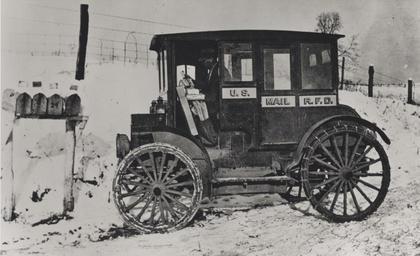 | Keywords: smithsonian institution smithsonianinstitution mailbox us mail usmail rural free delivery ruralfreedelivery rfd national postal museum nationalpostalmuseum train locomotive vehicle steam engine blackandwhite monochrome bike tractor black and white Date: c. 1910 Object number: A.2010-2 Medium: paper; photo-emulsion Dimensions (Unframed): 2 1/4” x 4 1/2" Description: Postal officials encouraged Rural Free Delivery (RFD) carriers to replace their horses and wagons with the latest in transportation technology. This unidentified carrier painted his early electric-motored vehicle in the same paint and identification scheme as the RFD wagons of the era. He is, no doubt, only able to complete his wintertime rounds thanks to a snow-plowed road. Automobiles were not yet adequate replacements for horses, wagons, and sleds on rural roads. Photographer: Unknown Place: United States of America Collection Description: Transportation/Motorized Credit line: National Postal Museum, Curatorial Photographic Collection Photographer: Unknown Repository: National Postal Museum, Curatorial Photographic Collection View more collections from the Smithsonian Institution. Date: c. 1910 Object number: A.2010-2 Medium: paper; photo-emulsion Dimensions (Unframed): 2 1/4” x 4 1/2" Description: Postal officials encouraged Rural Free Delivery (RFD) carriers to replace their horses and wagons with the latest in transportation technology. This unidentified carrier painted his early electric-motored vehicle in the same paint and identification scheme as the RFD wagons of the era. He is, no doubt, only able to complete his wintertime rounds thanks to a snow-plowed road. Automobiles were not yet adequate replacements for horses, wagons, and sleds on rural roads. Photographer: Unknown Place: United States of America Collection Description: Transportation/Motorized Credit line: National Postal Museum, Curatorial Photographic Collection Photographer: Unknown Repository: National Postal Museum, Curatorial Photographic Collection View more collections from the Smithsonian Institution. |