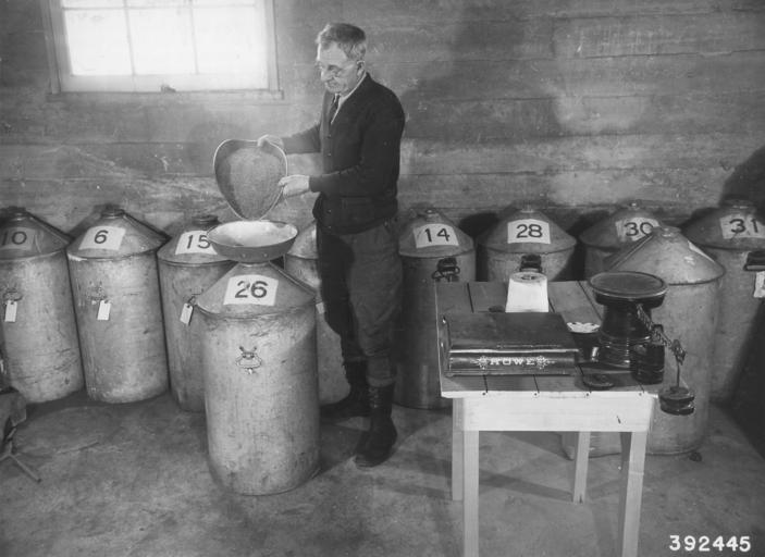 | Keywords: Photograph of Seed Stored in Air Tight Metal Containers - NARA - 2128581.jpg Scope and content Original caption After weighing seed is stored in air tight metal containers being kept separated according to the source of the cones General notes 2128581 Local identifier 392445 Department of Agriculture Forest Service Region 9 Eastern Region 1965 - Most Recent <br /> Department of Agriculture Division of Forestry 1881 - 07/01/1901 Predecessor NARA-Place Chippewa National Forest Minn 4509445 <br /> NARA's Great Lakes Region Chicago NRDA 7358 South Pulaski Road Chicago IL 60629-5898 02/1940 Record group Record Group 95 Records of the Forest Service 1870 - 2008 Record group ARC 424 Historic Photographs compiled ca 1880 - ca 1970 Series ARC 1812856 File unit File unit ARC Variant control numbers Agency-Assigned Identifier 392445 Other versions <gallery> File Photograph_of_Seed_Stored_in_Air_Tight_Metal_Containers_-_NARA_-_2128581 tif tif File Photograph_of_Seed_Stored_in_Air_Tight_Metal_Containers_-_NARA_-_2128581 jpg jpg </gallery> NARA-cooperation PD-USGov USDA NARA images from the Dept of Forestry |