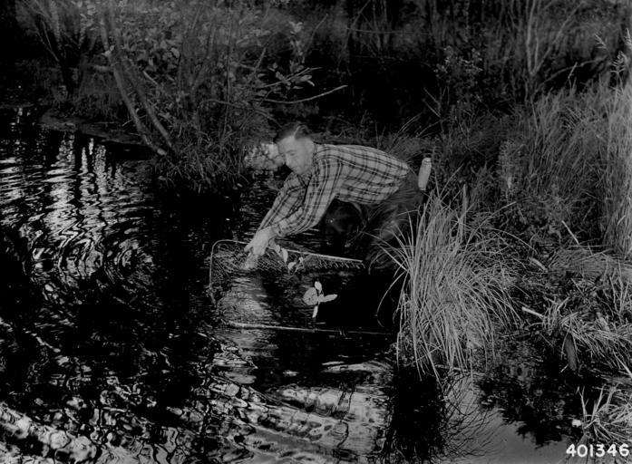| Keywords: Photograph of Setting a Beaver Live Trap on Spring Creek - NARA - 2128877.jpg Scope and content Original caption Setting a beaver live trap on Spring Creek Traps are set in shallow locality or must be well anchored so that they will not be submerged Traps are generally set near break in dam where the beaver are working or on a runway constantly used General notes 2128877 Local identifier 401346 Department of Agriculture Forest Service Region 9 Eastern Region 1965 - Most Recent <br /> Department of Agriculture Division of Forestry 1881 - 07/01/1901 Predecessor NARA-Place Chequamegon-Nicolet National Forest Wis 4509449 46 29856 -89 9231 <br /> NARA's Great Lakes Region Chicago NRDA 7358 South Pulaski Road Chicago IL 60629-5898 08/1940 Record group Record Group 95 Records of the Forest Service 1870 - 2008 Record group ARC 424 Historic Photographs compiled ca 1880 - ca 1970 Series ARC 1812856 File unit File unit ARC Variant control numbers Agency-Assigned Identifier 401346 Other versions <gallery> File Photograph_of_Setting_a_Beaver_Live_Trap_on_Spring_Creek_-_NARA_-_2128877 tif tif File Photograph_of_Setting_a_Beaver_Live_Trap_on_Spring_Creek_-_NARA_-_2128877 jpg jpg </gallery> NARA-cooperation PD-USGov USDA NARA images from the Dept of Forestry |