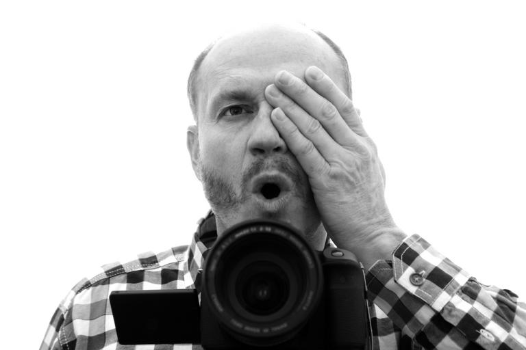Keywords: photographer man hand characters that goes into eye mirror selfie