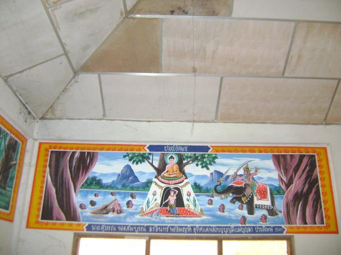 Keywords: Phra Mae Thorani mural.jpg sala kan prian of Forest Tradition Wat Pa Ban Sadao Mu 5 Tambon Tadthong Amphoe Mueang Yasothon th พระแม่ธรณี ในศาลาการ ปรียญ วัดป่าบ้านสะ ดา ต ตาดทอง อ มืองยโสธร own Pawyilee 2011-01-17 Cc-zero The defeat of Mara Elephants in Thai art Buddhist temple murals in Thailand Phra Mae Thorani |