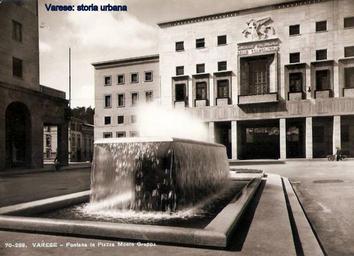 Keywords: Il lato settentrionale della piazza Monte Grappa ultimato da poco. Si nota il palazzo del Consiglio Provinciale delle Corporazioni (ultimato nel 1938, progetto ing. Mario Loreti), ora sede della Camera del Commercio. A sinistra la loggia di palazzo Castiglioni con l'alta asta della bandiera. varese piazzamontegrappa |