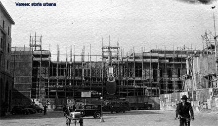 Keywords: La "nuova" piazza Monte Grappa in costruzione alla fine degli anni '30. A sinistra palazzo Castiglioni, in centro il cantiere del palazzo del Consiglio Provinciale delle Corporazioni (ora Camera di Commercio) e a destra si lavora per erigere la torre littoria (ora civica): tutte architetture ideate dall'ing. Mario Loreti. varese piazzamontegrappa |