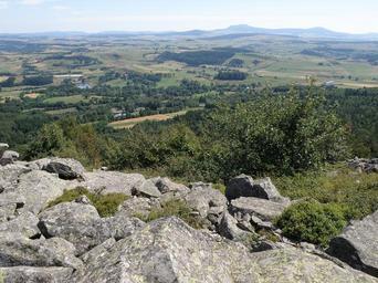 Keywords: Pic du Lizieux8.JPG Araules commune de la Haute-Loire France région Auvergne <br/> Vue prise depuis le pic du Lizieux appelé aussi suc du Lizieux alt 1388 mètres rochers à l ™avant-plan sis dans le sud-est de la commune d ™Araules La plaine en contrebas du moins sa partie plus rapprochée appartient à la comm de Mazet-Saint-Voy ; seule une petite étendue contre le bord droit de la photo se situe dans la comm d ™Araules L ™Ã©tang visible dans la plaine à gauche se trouve à l ™emplacement d ™une ancienne mine ; le groupe de maisons un peu à droite de l ™Ã©tang est le hameau du Bouchat Un peu plus près de nous le hameau de Faurie toitures grises <br/> à l ™horizon le sommet le plus élevé sur la photo et dans la réalité est le mont Mézenc alt 1753m reconnaissable à sa silhouette caractéristique ; à sa droite le mont d ™Alambre alt 1691 Contre le bord droit tombant en partie en dehors de l ™image probablement le Rocher Tourte alt 1535 Le morne aplati que l ™on aperçoit au centre à gauche du Mézenc et plus proche de nous pourrait être le mont Signon alt 1455m comm de Chaudeyrolles <br/> Objectif orienté au sud own Torsade de Pointes 2009-08 Pic du Lizieux |