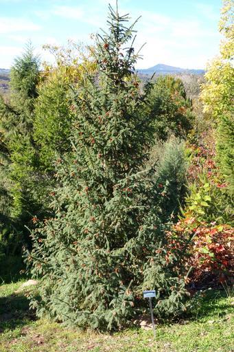 Keywords: Picea purpurea - Quarryhill Botanical Garden - DSC03479.JPG en Botanical specimen in Quarryhill Botanical Garden Glen Ellen California USA 2013-11-13 15 38 16 own Daderot other versions cc-zero Conifers in Quarryhill Botanical Garden Uploaded with UploadWizard Picea purpurea |