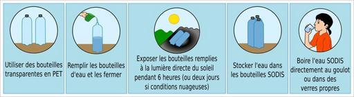Keywords: Pictogrammes SODIS.svg SODIS method solar water disinfection SODIS fr désinfection solaire de l'eau Pictograms_SODIS jpg 2010-09-05 12 43 UTC Pictograms_SODIS jpg Samuel Luzi file as it is Fundacion SODIS http //www fundacionsodis org/ some pictorials derivative work Treehill <sup><small> fr Treehill</small></sup> Other fields + RetouchedPicture passage svg + traduction Treehill Pictograms_SODIS jpg self made parts of the pictorials are taken from a leaflet used in</nowiki> Uploaded with derivativeFX Development Survival skills Sustainability Solar water treatment |