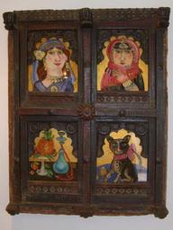 Keywords: picture frame wood decorated carving frame image art painted colorful cabinet door vierfeldrig